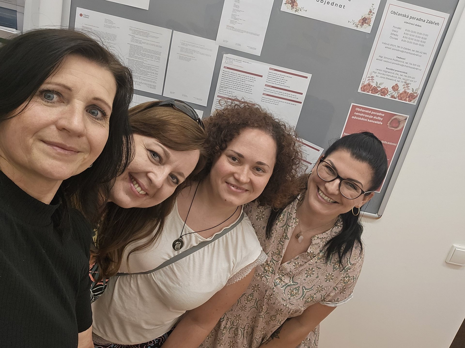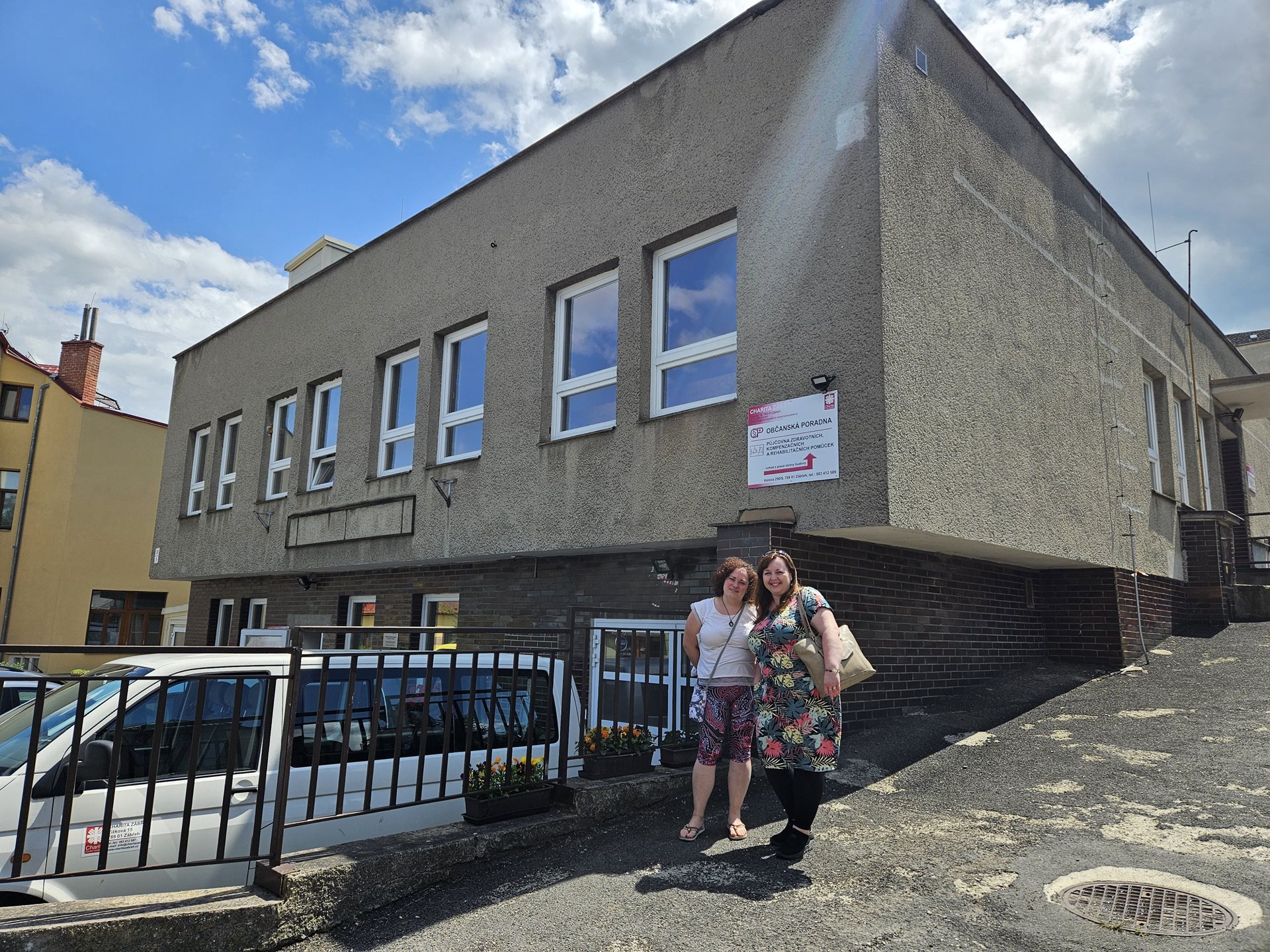Odpoledne pracovnice navštívily druhé zařízení, a to Občanskou poradnu při Charitě Zábřeh. Při první návštěvě této organizace se jim věnovala sociální pracovnice, paní Gieslová. Výstupem bylo získání cenných informací o poskytovaných službách a navázání spolupráce. Při návštěvě bylo sociálním pracovnicím umožněno prohlédnout si také charitní šatník a půjčovnu kompenzačních pomůcek. Paní Gieslová informovala o budoucí změně, kdy se organizace bude letos na podzim stěhovat do jiných prostor. Tímto se těšíme na další návštěvu!